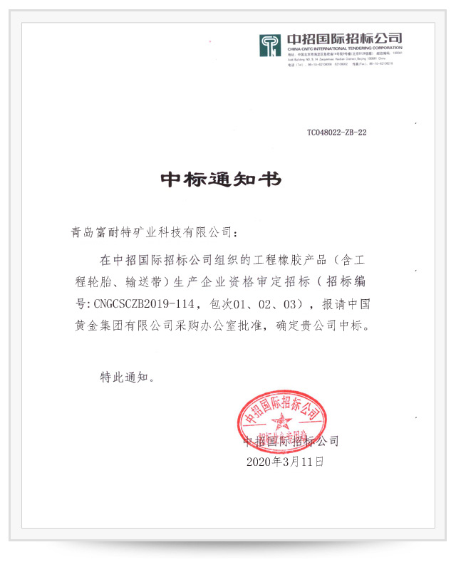日前中國黃金集團有限公司(以下簡稱中國黃金)召開招標會議,組織中國黃金所屬14家企業通過電子商務形式招標采購所需的工程橡膠產品。青島蜜桃人妻精品无码AV礦業科技有限公司以不俗的實力“連中三元”,中標中國黃金集團2020年度三大類別橡膠產品。